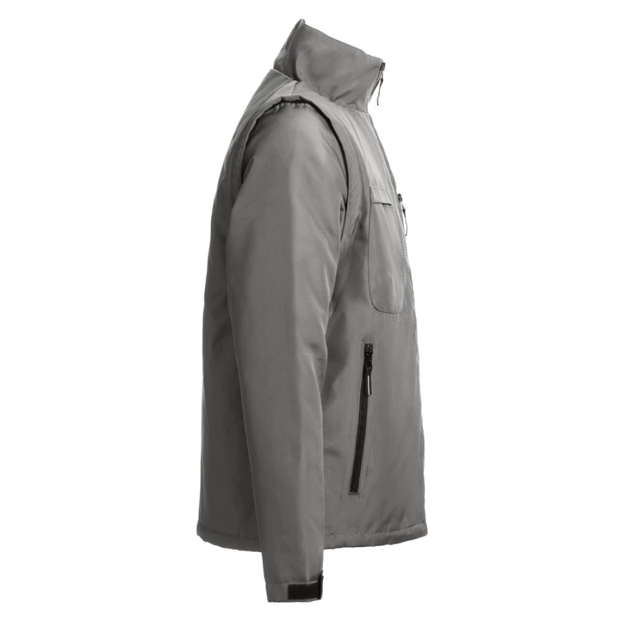 Kurtka ocieplana unisex (zewnętrze: 170 g/m² 100% poliester oxford z powłoką akrylową, wypełnienie: 75 g/m² 100% poliester, wnętrze: 65 g/m² 100% poliester taffeta). Możliwość zamiany na kamizelkę, z odpinanymi rękawami zapinanymi na zamek. Zawiera kołnierz wyłożony polarem oraz trzy kieszenie z zamkiem błyskawicznym. Dostęp z tyłu zapinany na zamek błyskawiczny dla łatwego znakowania. Rozmiary: S, M, L, XL, XXL, 3XL