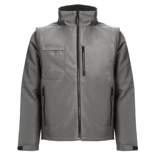 Kurtka ocieplana unisex (zewnętrze: 170 g/m² 100% poliester oxford z powłoką akrylową, wypełnienie: 75 g/m² 100% poliester, wnętrze: 65 g/m² 100% poliester taffeta). Możliwość zamiany na kamizelkę, z odpinanymi rękawami zapinanymi na zamek. Zawiera kołnierz wyłożony polarem oraz trzy kieszenie z zamkiem błyskawicznym. Dostęp z tyłu zapinany na zamek błyskawiczny dla łatwego znakowania. Rozmiary: S, M, L, XL, XXL, 3XL