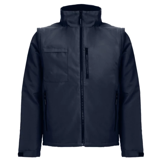 Kurtka ocieplana unisex (zewnętrze: 170 g/m² 100% poliester oxford z powłoką akrylową, wypełnienie: 75 g/m² 100% poliester, wnętrze: 65 g/m² 100% poliester taffeta). Możliwość zamiany na kamizelkę, z odpinanymi rękawami zapinanymi na zamek. Zawiera kołnierz wyłożony polarem oraz trzy kieszenie z zamkiem błyskawicznym. Dostęp z tyłu zapinany na zamek błyskawiczny dla łatwego znakowania. Rozmiary: S, M, L, XL, XXL, 3XL
