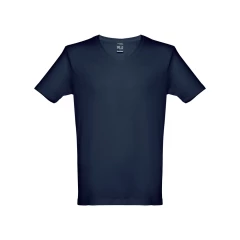 Męski t-shirt o regularnym kroju. 100% bawełna dżersej (150 g/m²) ze zgrzebną przędzą bawełnianą (kolory: 194, 195 i 199: 60% bawełna/40% poliester). Posiada kołnierzyk z dżerseju ze wzmocnionym dekoltem w kształcie litery „V”, wewnątrz z dżersejową tasiemką. Podwójne szwy na rękawach i dolnej części. Rozmiary: S, M, L, XL, XXL