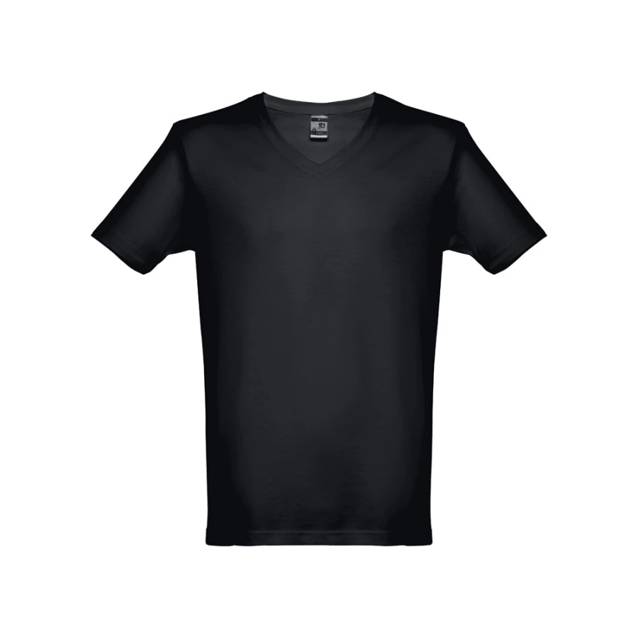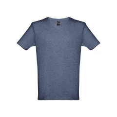 Męski t-shirt o regularnym kroju. 100% bawełna dżersej (150 g/m²) ze zgrzebną przędzą bawełnianą (kolory: 194, 195 i 199: 60% bawełna/40% poliester). Posiada kołnierzyk z dżerseju ze wzmocnionym dekoltem w kształcie litery „V”, wewnątrz z dżersejową tasiemką. Podwójne szwy na rękawach i dolnej części. Rozmiary: S, M, L, XL, XXL
