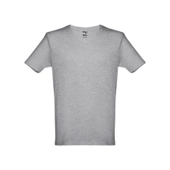 Męski t-shirt o regularnym kroju. 100% bawełna dżersej (150 g/m²) ze zgrzebną przędzą bawełnianą (kolory: 194, 195 i 199: 60% bawełna/40% poliester). Posiada kołnierzyk z dżerseju ze wzmocnionym dekoltem w kształcie litery „V”, wewnątrz z dżersejową tasiemką. Podwójne szwy na rękawach i dolnej części. Rozmiary: S, M, L, XL, XXL
