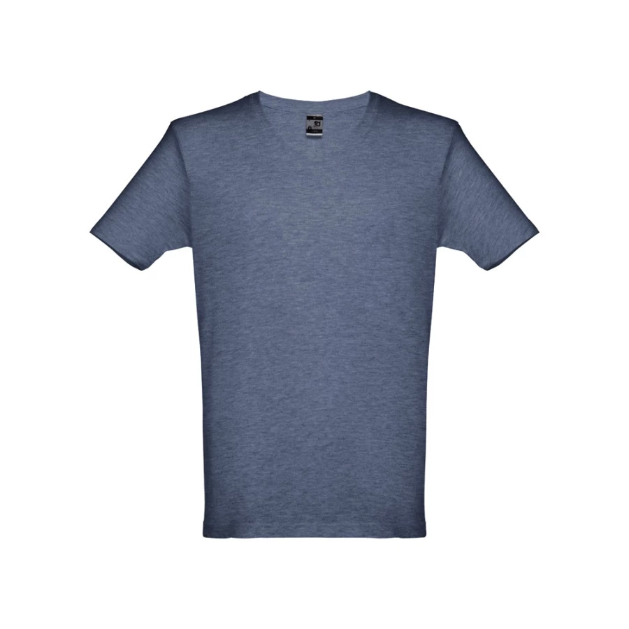Męski t-shirt o regularnym kroju. 100% bawełna dżersej (150 g/m²) ze zgrzebną przędzą bawełnianą (kolory: 194, 195 i 199: 60% bawełna/40% poliester). Posiada kołnierzyk z dżerseju ze wzmocnionym dekoltem w kształcie litery „V”, wewnątrz z dżersejową tasiemką. Podwójne szwy na rękawach i dolnej części. Rozmiary: S, M, L, XL, XXL