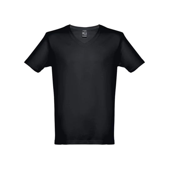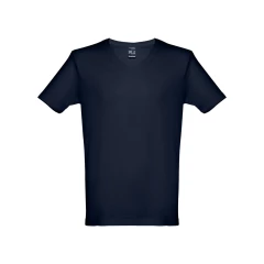 Męski t-shirt o regularnym kroju. 100% bawełna dżersej (150 g/m²) ze zgrzebną przędzą bawełnianą (kolory: 194, 195 i 199: 60% bawełna/40% poliester). Posiada kołnierzyk z dżerseju ze wzmocnionym dekoltem w kształcie litery „V”, wewnątrz z dżersejową tasiemką. Podwójne szwy na rękawach i dolnej części. Rozmiary: S, M, L, XL, XXL