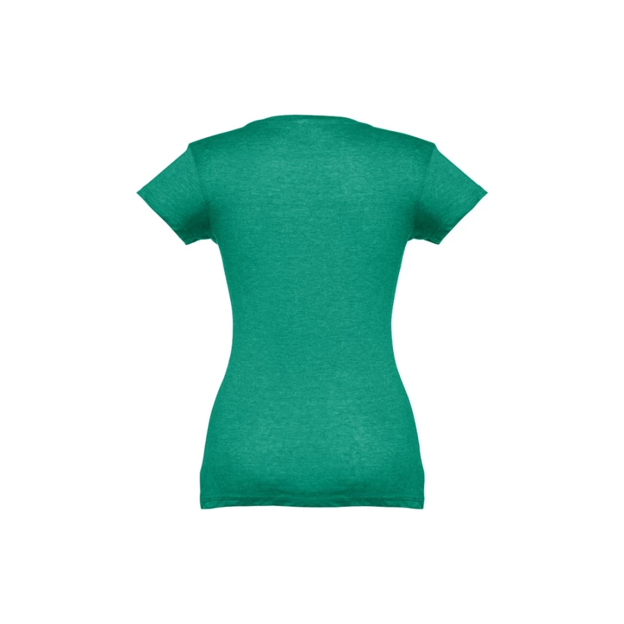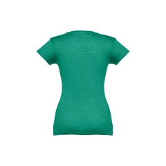 Damski t-shirt o dopasowanym kroju. 100% bawełna dżersej (150 g/m²) ze zgrzebną przędzą bawełnianą (kolory: 194, 195 i 199: 60% bawełna/40% poliester). Posiada kołnierzyk z dżerseju z dekoltem w kształcie litery „V”, wzmocniony od wewnątrz dżersejową tasiemką. Podwójne szwy na rękawach i dolnej części. Rozmiary: S, M, L, XL, XXL