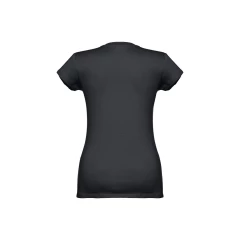 Damski t-shirt o dopasowanym kroju. 100% bawełna dżersej (150 g/m²) ze zgrzebną przędzą bawełnianą (kolory: 194, 195 i 199: 60% bawełna/40% poliester). Posiada kołnierzyk z dżerseju z dekoltem w kształcie litery „V”, wzmocniony od wewnątrz dżersejową tasiemką. Podwójne szwy na rękawach i dolnej części. Rozmiary: S, M, L, XL, XXL