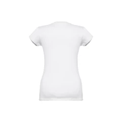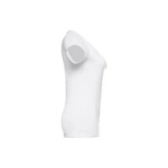 Damski t-shirt o dopasowanym kroju. 100% bawełna dżersej (150 g/m²) ze zgrzebną przędzą bawełnianą. Posiada kołnierzyk z dżerseju z dekoltem w kształcie litery „V”, wzmocniony od wewnątrz dżersejową tasiemką. Podwójne szwy na rękawach i dolnej części. Rozmiary: S, M, L, XL, XXL