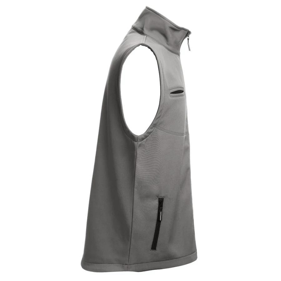 Kamizelka softshell (unisex). 96% poliester i 4% elastan z dwoma warstwami (280 g/m²). Kamizelka nieprzemakalna, z tył dłuższa niż z przodu. Posiada 3 kieszenie: 2 boczne z zamkiem błyskawicznym oraz jedną na piersi. Łatwy dostęp do obszaru pod nadruk. Rozmiary: S, M, L, XL, XXL, 3XL