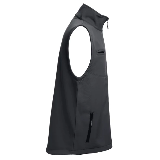 Kamizelka softshell (unisex). 96% poliester i 4% elastan z dwoma warstwami (280 g/m²). Kamizelka nieprzemakalna, z tył dłuższa niż z przodu. Posiada 3 kieszenie: 2 boczne z zamkiem błyskawicznym oraz jedną na piersi. Łatwy dostęp do obszaru pod nadruk. Rozmiary: S, M, L, XL, XXL, 3XL