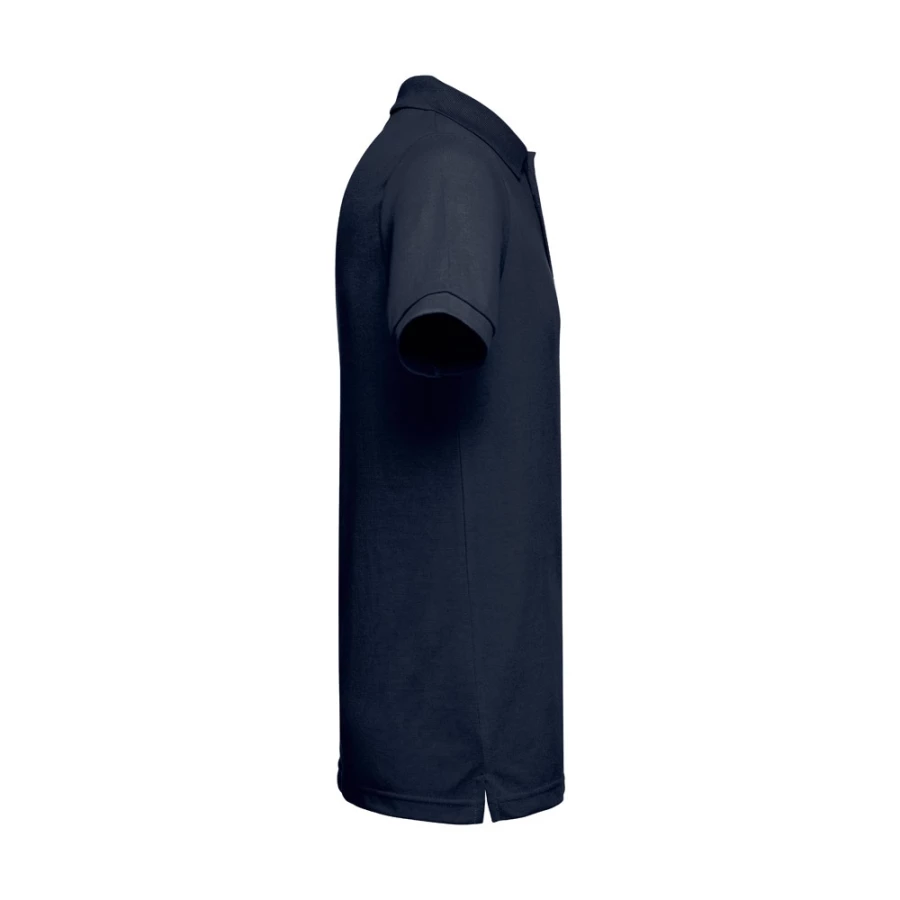 Męska koszulka polo z krótkim rękawem, z siateczki piqué 35% zgrzebnej bawełny i 65% poliestru (200 g/m²). Kolor 183: 85% bawełna/15% wiskoza. Polo o regularnym kroju z prążkowanym kołnierzykiem i rękawami, kołnierzyk jest wzmocniony taśmą piqué. Z przodu znajdują się 3 pasujące kolorystycznie guziki (dodatkowy guzik na wewnętrznym szwie). Zszywana po bokach. Rozmiary: XS, S, M, L, XL, XXL