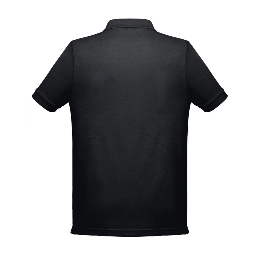 Męska koszulka polo z krótkim rękawem, z siateczki piqué 35% zgrzebnej bawełny i 65% poliestru (200 g/m²). Kolor 183: 85% bawełna/15% wiskoza. Polo o regularnym kroju z prążkowanym kołnierzykiem i rękawami, kołnierzyk jest wzmocniony taśmą piqué. Z przodu znajdują się 3 pasujące kolorystycznie guziki (dodatkowy guzik na wewnętrznym szwie). Zszywana po bokach. Rozmiary: XS, S, M, L, XL, XXL
