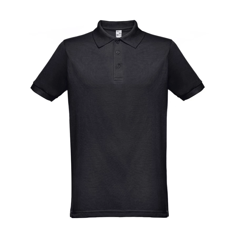 Męska koszulka polo z krótkim rękawem, z siateczki piqué 35% zgrzebnej bawełny i 65% poliestru (200 g/m²). Kolor 183: 85% bawełna/15% wiskoza. Polo o regularnym kroju z prążkowanym kołnierzykiem i rękawami, kołnierzyk jest wzmocniony taśmą piqué. Z przodu znajdują się 3 pasujące kolorystycznie guziki (dodatkowy guzik na wewnętrznym szwie). Zszywana po bokach. Rozmiary: XS, S, M, L, XL, XXL