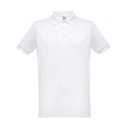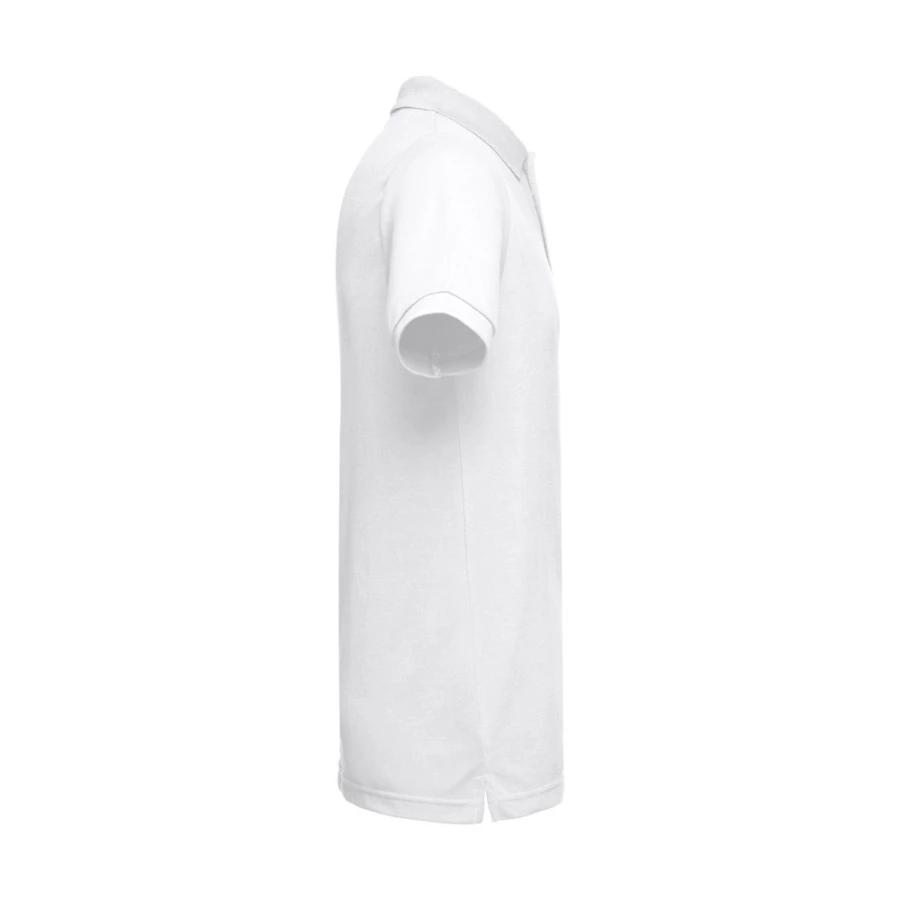 Męska koszulka polo z krótkim rękawem, z siateczki piqué 35% zgrzebnej bawełny i 65% poliestru (200 g/m²). Polo o regularnym kroju z prążkowanym kołnierzykiem i rękawami, kołnierzyk jest wzmocniony taśmą piqué. Z przodu znajdują się 3 pasujące kolorystycznie guziki (dodatkowy guzik na wewnętrznym szwie). Zszywana po bokach. Rozmiary: XS, S, M, L, XL, XXL