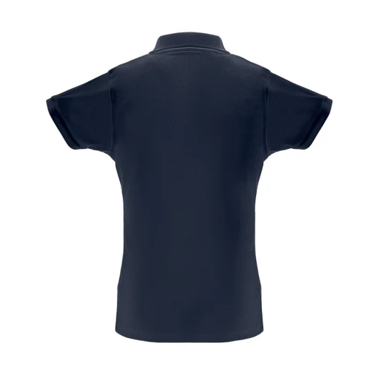 Damska koszulka polo z krótkim rękawem (200 g/m²) z 35% zgrzebnej bawełny i 65% z poliestru (200 g/m²) (kolor: 183: 85% bawełna/15% wiskoza). Dopasowana w talii koszulka polo ze ściągaczem i rękawami, kołnierz wzmocniony wstążką z pikowej dzianiny. Zawiera wzmocniony kołnierz z 3 dopasowanymi kolorystycznie guzikami (dodatkowy guzik w szwie wewnętrznym). Zszywana po bokach. Rozmiary: S, M, L, XL, XXL