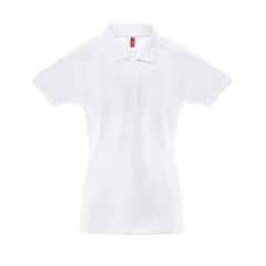 Damska koszulka polo z krótkim rękawem z siateczki z piki, 35% zgrzebnej bawełny i 65% poliestru (200 g/m²). Dopasowana w talii koszulka polo ze ściągaczem i rękawami, kołnierz wzmocniony wstążką z pikowej dzianiny. Zawiera wzmocniony kołnierz z 3 dopasowanymi kolorystycznie guzikami (dodatkowy guzik w szwie wewnętrznym). Zszywana po bokach. Rozmiary: S, M, L, XL, XXL