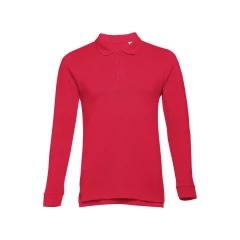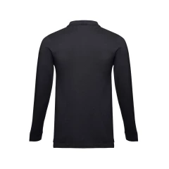 Męski t-shirt polo z długim rękawem ze 100% bawełny o splocie piqué (210 g/m²) ze zgrzebną przędzą bawełnianą (kolor 183: 85% bawełna/15% wiskoza). Polo o regularnym fasonie, z prążkowanym kołnierzykiem i rękawami. Kołnierzyk jest wzmocniony taśmą piqué. Posiada 3 dopasowane kolorystycznie guziki (dodatkowy guzik umieszczony w szwie wewnętrznym). Zszywany po bokach, z małymi rozcięciami w szwach bocznych. Rozmiar: 3XL