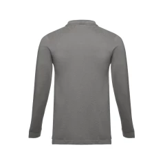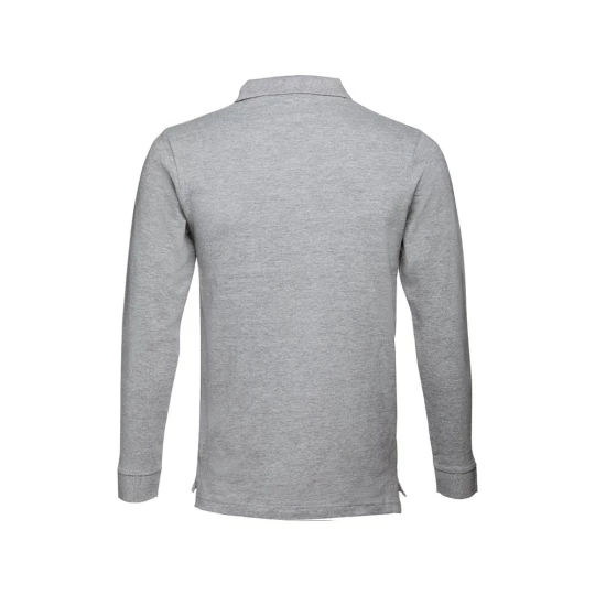 Męski t-shirt polo z długim rękawem ze 100% bawełny o splocie piqué (210 g/m²) ze zgrzebną przędzą bawełnianą (kolor 183: 85% bawełna/15% wiskoza). Polo o regularnym fasonie, z prążkowanym kołnierzykiem i rękawami. Kołnierzyk jest wzmocniony taśmą piqué. Posiada 3 dopasowane kolorystycznie guziki (dodatkowy guzik umieszczony w szwie wewnętrznym). Zszywany po bokach, z małymi rozcięciami w szwach bocznych. Zdejmowana widoczna etykieta. Rozmiary: S, M, L, XL, XXL