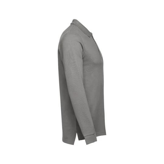 Męski t-shirt polo z długim rękawem ze 100% bawełny o splocie piqué (210 g/m²) ze zgrzebną przędzą bawełnianą (kolor 183: 85% bawełna/15% wiskoza). Polo o regularnym fasonie, z prążkowanym kołnierzykiem i rękawami. Kołnierzyk jest wzmocniony taśmą piqué. Posiada 3 dopasowane kolorystycznie guziki (dodatkowy guzik umieszczony w szwie wewnętrznym). Zszywany po bokach, z małymi rozcięciami w szwach bocznych. Zdejmowana widoczna etykieta. Rozmiary: S, M, L, XL, XXL