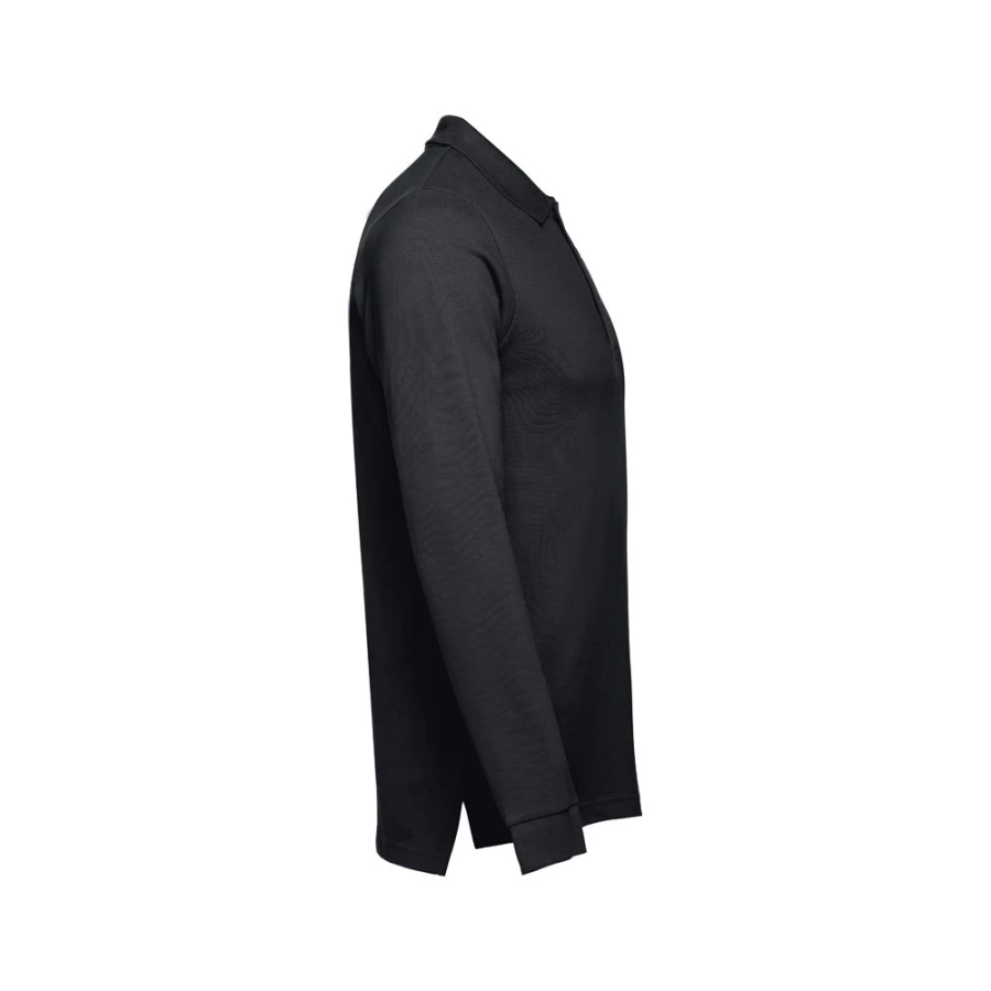 Męski t-shirt polo z długim rękawem ze 100% bawełny o splocie piqué (210 g/m²) ze zgrzebną przędzą bawełnianą (kolor 183: 85% bawełna/15% wiskoza). Polo o regularnym fasonie, z prążkowanym kołnierzykiem i rękawami. Kołnierzyk jest wzmocniony taśmą piqué. Posiada 3 dopasowane kolorystycznie guziki (dodatkowy guzik umieszczony w szwie wewnętrznym). Zszywany po bokach, z małymi rozcięciami w szwach bocznych. Zdejmowana widoczna etykieta. Rozmiary: S, M, L, XL, XXL