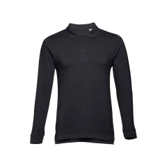 Męski t-shirt polo z długim rękawem ze 100% bawełny o splocie piqué (210 g/m²) ze zgrzebną przędzą bawełnianą (kolor 183: 85% bawełna/15% wiskoza). Polo o regularnym fasonie, z prążkowanym kołnierzykiem i rękawami. Kołnierzyk jest wzmocniony taśmą piqué. Posiada 3 dopasowane kolorystycznie guziki (dodatkowy guzik umieszczony w szwie wewnętrznym). Zszywany po bokach, z małymi rozcięciami w szwach bocznych. Zdejmowana widoczna etykieta. Rozmiary: S, M, L, XL, XXL