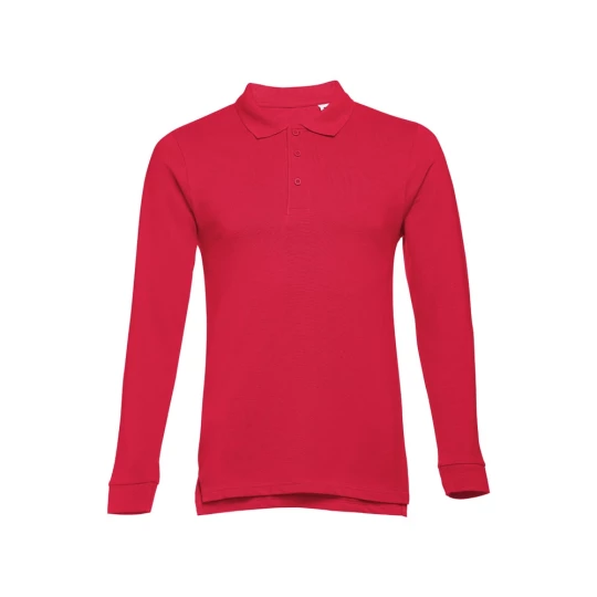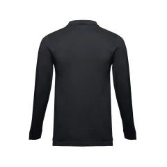 Męski t-shirt polo z długim rękawem ze 100% bawełny o splocie piqué (210 g/m²) ze zgrzebną przędzą bawełnianą (kolor 183: 85% bawełna/15% wiskoza). Polo o regularnym fasonie, z prążkowanym kołnierzykiem i rękawami. Kołnierzyk jest wzmocniony taśmą piqué. Posiada 3 dopasowane kolorystycznie guziki (dodatkowy guzik umieszczony w szwie wewnętrznym). Zszywany po bokach, z małymi rozcięciami w szwach bocznych. Zdejmowana widoczna etykieta. Rozmiary: S, M, L, XL, XXL