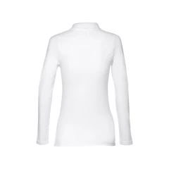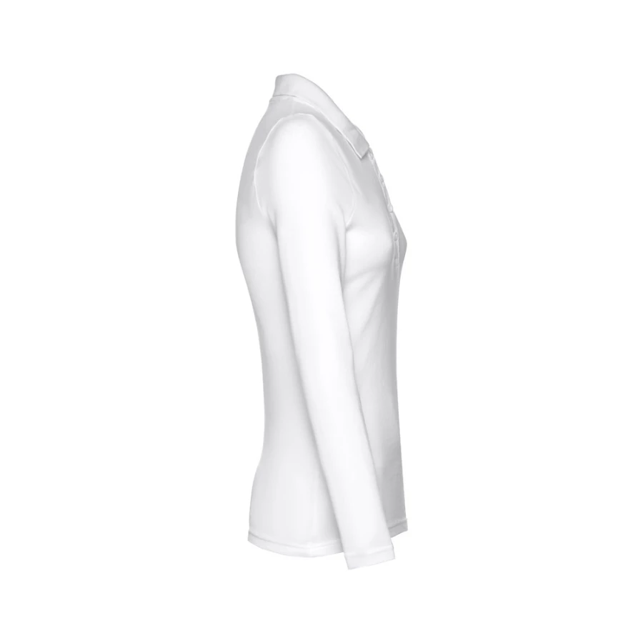 Damski t-shirt polo z długim rękawem ze 100% bawełny o splocie piqué (210 g/m²) ze zgrzebną przędzą bawełnianą. Prążkowany kołnierzyk jest wzmocniony taśmą piqué. Posiada 4 dopasowane kolorystycznie guziki (dodatkowy guzik umieszczony w szwie wewnętrznym). Zszywany po bokach, z podwójnym ściegiem na rękawach. Zdejmowana widoczna etykieta. Rozmiary: S, M, L, XL, XXL