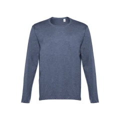 Męski t-shirt z długim rękawem. 100% bawełna dżersej (150 g/m²) ze zgrzebną przędzą bawełnianą (kolory: 195: 60% bawełna/40% poliester, kolor 183: 90% bawełna/10% wiskoza). Posiada 1x1 prążkowany kołnierzyk ze wzmacniającą taśmą z dżerseju. Koszulka o regularnym kroju z podwójnym szwem na rękawach i u dołu. Rozmiary: S, M, L, XL, XXL