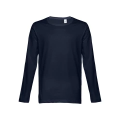 Męski t-shirt z długim rękawem. 100% bawełna dżersej (150 g/m²) ze zgrzebną przędzą bawełnianą (kolory: 195: 60% bawełna/40% poliester, kolor 183: 90% bawełna/10% wiskoza). Posiada 1x1 prążkowany kołnierzyk ze wzmacniającą taśmą z dżerseju. Koszulka o regularnym kroju z podwójnym szwem na rękawach i u dołu. Rozmiary: S, M, L, XL, XXL