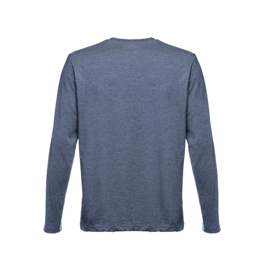 Męski t-shirt z długim rękawem. 100% bawełna dżersej (150 g/m²) ze zgrzebną przędzą bawełnianą (kolory: 195: 60% bawełna/40% poliester, kolor 183: 90% bawełna/10% wiskoza). Posiada 1x1 prążkowany kołnierzyk ze wzmacniającą taśmą z dżerseju. Koszulka o regularnym kroju z podwójnym szwem na rękawach i u dołu. Rozmiary: S, M, L, XL, XXL