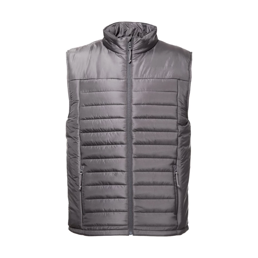 Watowana kamizelka (unisex) wykonana w 100% z nylonu ripstop z recyklingu (350 g/m²), wnętrze jest wyłożone w 100% nylonową taftą z recyklingu (350 g/m²) dla większego komfortu podczas noszenia. Przednie zapięcie na zamek błyskawiczny YKK® - marki, która korzysta z nowoczesnego sprzętu o wysokiej kontroli jakości - i uchwyt. Posiada dwie przednie kieszenie z zamkami błyskawicznymi i ściągaczami oraz dwie wewnętrzne kieszenie z samoprzylepnymi zamkami błyskawicznymi. W dolnej części pleców znajduje się zapinany na zamek dostęp ułatwiający personalizację. Rozmiary: XS, S, M, L, XL, XXL, 3XL
