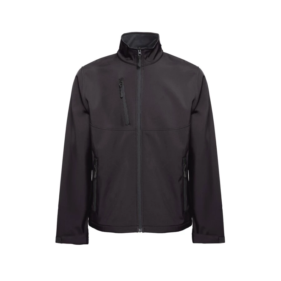 Dwuwarstwowa kurtka softshell (unisex), 96% poliestru i 4% elastanu (280 g/m²) z powłoką wodoodporną. Kurtka z podszewką z polaru z 2 przednimi kieszeniami i ukośną kieszenią na piersi, oba zamki z gumowymi ściągaczami. Regulowane mankiety z paskiem o przylegającym zapięciu i sznurkiem u dołu. Rozmiary: XS, S, M, L, XL, XXL