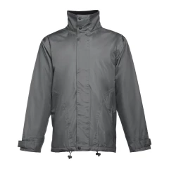 Uniwersalna wyściełana parka (unisex). 100% poliester. Zewnętrzna część: 100% poliester pongee 240 g/m² i wodoodporna powłoka PCV. Wnętrze: 100% poliester z tafty 65 g/m². Wypełnienie: 100% poliester 80 g/m². Obszyty czarnym polarem kołnierz (przylegające zapięcie). Chowany kaptur w kołnierzu, regulowany za pomocą ściągających sznurków z czarnymi stoperami. Przedni otwór z klapą, zamek błyskawiczny (pasujący kolorystycznie), przylegające zapięcie i zatrzaski w kolorze czarnym. 2 zewnętrzne kieszenie z patką i 2 wewnętrzne kieszenie (1 na telefon komórkowy) o przylegającym zamknięciu. Mankiety wewnętrzne z prążkowanej siatki 2x2. Regulowane mankiety zewnętrzne z przylegającym zapięciem. Termo-uszczelnione szwy. Wewnętrzny zamek błyskawiczny. Rozmiary: XS, S, M, L, XL, XXL