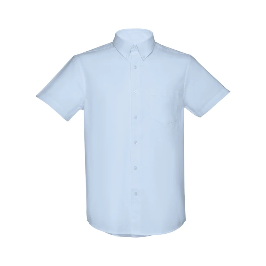 Męska koszula oxford z krótkim rękawem, wykonana z 70% bawełny i 30% poliestru (130 g/m²). Posiada podwójny szew na mankiecie i kieszeń na piersi po lewej stronie. Kołnierz z 2 guzikami i zapięcie na 7 guzików w kolorze perłowym. Rozmiary: S, M, L, XL, XXL