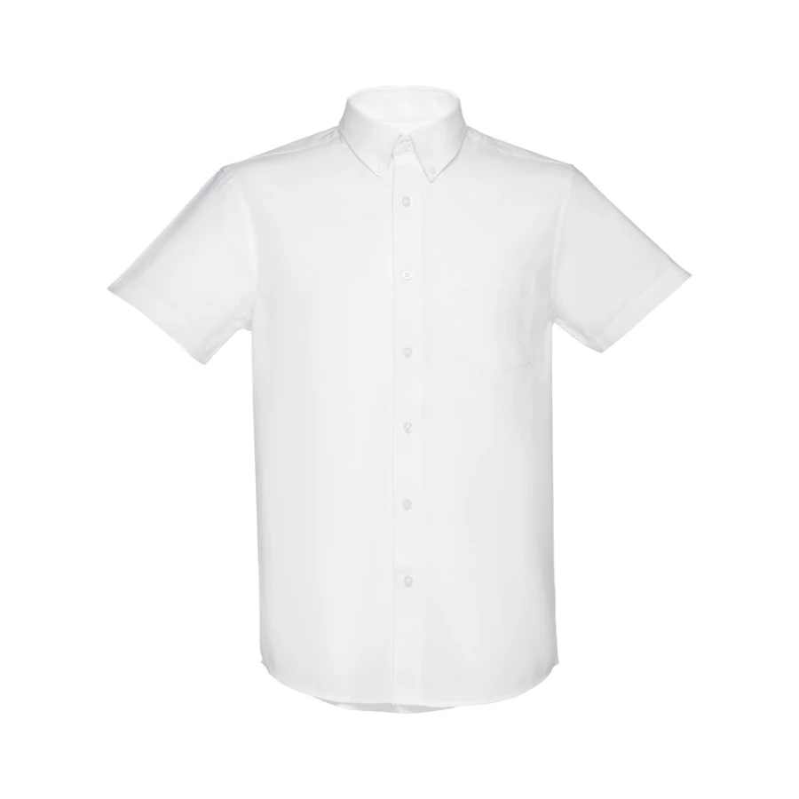 Męska koszula oxford z krótkim rękawem, wykonana z 70% bawełny i 30% poliestru (130 g/m²). Posiada podwójny szew na mankiecie i kieszeń na piersi po lewej stronie. Kołnierz z 2 guzikami i zapięcie na 7 guzików w kolorze perłowym. Rozmiary: S, M, L, XL, XXL