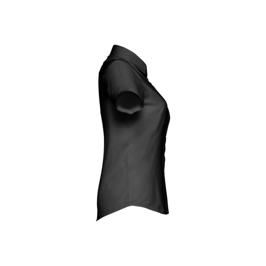 Damska koszula oxford z krótkim rękawem, wykonana z 70% bawełny i 30% poliestru (130 g/m²). Dopasowana koszula z 2 zaszewkami z tyłu i z przodu oraz podwójnym szwem na dole rękawów. Posiada 7 guzików w kolorze perłowym. Rozmiary: S, M, L, XL, XXL
