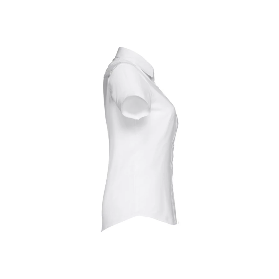 Damska koszula oxford z krótkim rękawem, wykonana z 70% bawełny i 30% poliestru (130 g/m²). Dopasowana koszula z 2 zaszewkami z tyłu i z przodu oraz podwójnym szwem na dole rękawów. Posiada 7 guzików w kolorze perłowym. Rozmiary: S, M, L, XL, XXL
