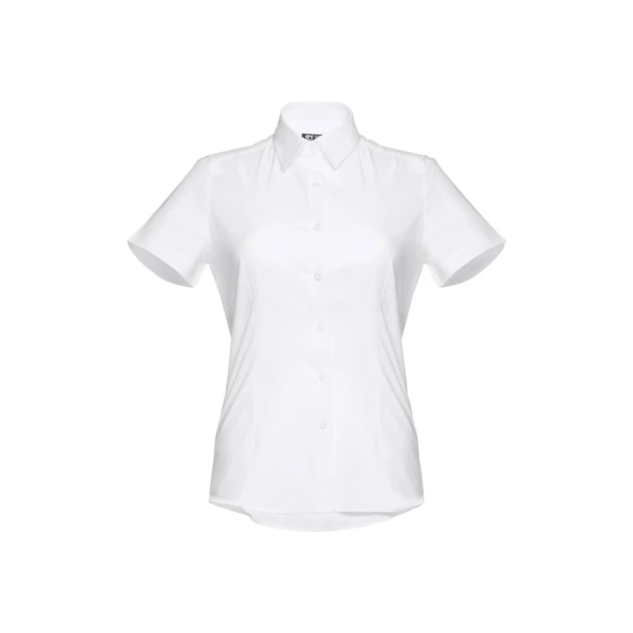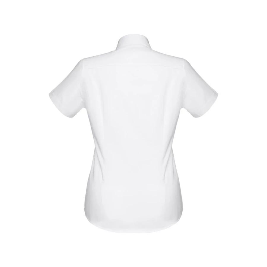 Damska koszula oxford z krótkim rękawem, wykonana z 70% bawełny i 30% poliestru (130 g/m²). Dopasowana koszula z 2 zaszewkami z tyłu i z przodu oraz podwójnym szwem na dole rękawów. Posiada 7 guzików w kolorze perłowym. Rozmiary: S, M, L, XL, XXL