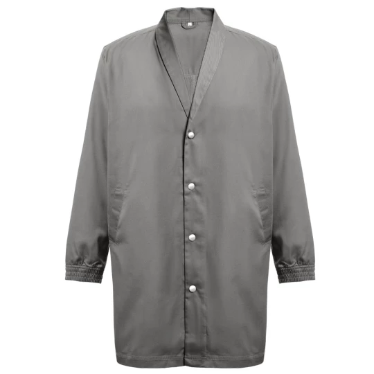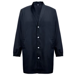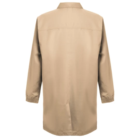 Płaszcz roboczu (unisex) 20% bawełny i 80% poliestru (190 g/m²). Elegancki i nowoczesny krój ze stylizowanym kołnierzem i 2 bocznymi kieszeniami. Elastyczne mankiety i zapięcie na zatrzaski. Otwór z tyłu dla większej swobody ruchów. Rozmiary: S, M, L, XL, XXL, 3XL