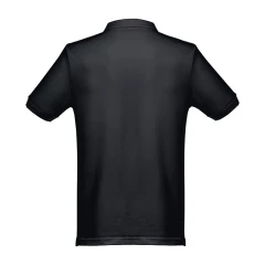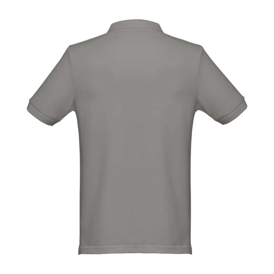 Męska koszulka polo z krótkim rękawem wykonana w 100% z bawełny zgrzebnej (240 g/m²) (kolor: 183: 85% bawełny/15% wiskozy). Regularny krój z kołnierzem i tasiemkowymi rękawami oraz wzmocnieniem kołnierza typu pique. Wzmocniony kołnierz z 3 dopasowanymi kolorystycznie guzikami (dodatkowy guzik umieszczony w szwie wewnętrznym). Zszywana po bokach, z małymi rozcięciami w szwach bocznych u dołu. Zdejmowana widoczna etykieta. Rozmiary: S, M, L, XL, XXL