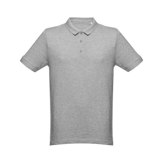 Męska koszulka polo z krótkim rękawem wykonana w 100% z bawełny zgrzebnej (240 g/m²) (kolor: 183: 85% bawełny/15% wiskozy). Regularny krój z kołnierzem i tasiemkowymi rękawami oraz wzmocnieniem kołnierza typu pique. Wzmocniony kołnierz z 3 dopasowanymi kolorystycznie guzikami (dodatkowy guzik umieszczony w szwie wewnętrznym). Zszywana po bokach, z małymi rozcięciami w szwach bocznych u dołu. Zdejmowana widoczna etykieta. Rozmiary: S, M, L, XL, XXL