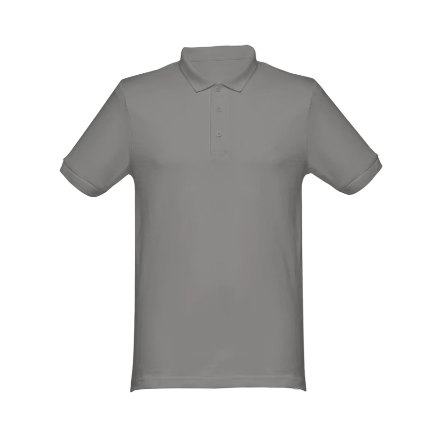 Męska koszulka polo z krótkim rękawem wykonana w 100% z bawełny zgrzebnej (240 g/m²) (kolor: 183: 85% bawełny/15% wiskozy). Regularny krój z kołnierzem i tasiemkowymi rękawami oraz wzmocnieniem kołnierza typu pique. Wzmocniony kołnierz z 3 dopasowanymi kolorystycznie guzikami (dodatkowy guzik umieszczony w szwie wewnętrznym). Zszywana po bokach, z małymi rozcięciami w szwach bocznych u dołu. Zdejmowana widoczna etykieta. Rozmiary: S, M, L, XL, XXL