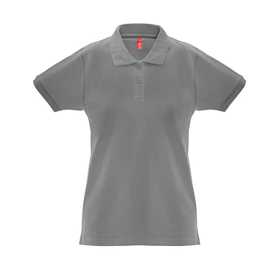 Damska koszulka polo ze 100% zgrzebnej bawełny (240 g/m²) z krótkim rękawem. Krój regular z kołnierzem i wstążkami na rękawach oraz wzmocnieniem kołnierza z piki. Wzmocniony kołnierzyk zapinany na 2 guziki w tym samym kolorze (dodatkowy guzik w szwie wewnętrznym). Zszybana po bokach, z małymi bocznymi otworami na dole. Widoczna etykieta jest możliwa do usunięcia. Rozmiary: S, M, L, XL, XXL
