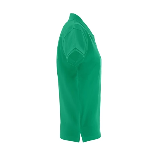 Damska koszulka polo ze 100% zgrzebnej bawełny (240 g/m²) z krótkim rękawem. Krój regular z kołnierzem i wstążkami na rękawach oraz wzmocnieniem kołnierza z piki. Wzmocniony kołnierzyk zapinany na 2 guziki w tym samym kolorze (dodatkowy guzik w szwie wewnętrznym). Zszybana po bokach, z małymi bocznymi otworami na dole. Widoczna etykieta jest możliwa do usunięcia. Rozmiary: S, M, L, XL, XXL