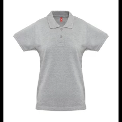 Damska koszulka polo ze 100% zgrzebnej bawełny (240 g/m²) z krótkim rękawem. Krój regular z kołnierzem i wstążkami na rękawach oraz wzmocnieniem kołnierza z piki. Wzmocniony kołnierzyk zapinany na 2 guziki w tym samym kolorze (dodatkowy guzik w szwie wewnętrznym). Zszybana po bokach, z małymi bocznymi otworami na dole. Widoczna etykieta jest możliwa do usunięcia. Rozmiary: S, M, L, XL, XXL