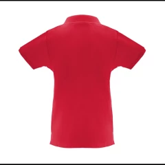 Damska koszulka polo ze 100% zgrzebnej bawełny (240 g/m²) z krótkim rękawem. Krój regular z kołnierzem i wstążkami na rękawach oraz wzmocnieniem kołnierza z piki. Wzmocniony kołnierzyk zapinany na 2 guziki w tym samym kolorze (dodatkowy guzik w szwie wewnętrznym). Zszybana po bokach, z małymi bocznymi otworami na dole. Widoczna etykieta jest możliwa do usunięcia. Rozmiary: S, M, L, XL, XXL