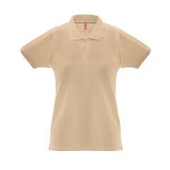 Damska koszulka polo ze 100% zgrzebnej bawełny (240 g/m²) z krótkim rękawem. Krój regular z kołnierzem i wstążkami na rękawach oraz wzmocnieniem kołnierza z piki. Wzmocniony kołnierzyk zapinany na 2 guziki w tym samym kolorze (dodatkowy guzik w szwie wewnętrznym). Zszybana po bokach, z małymi bocznymi otworami na dole. Widoczna etykieta jest możliwa do usunięcia. Rozmiary: S, M, L, XL, XXL