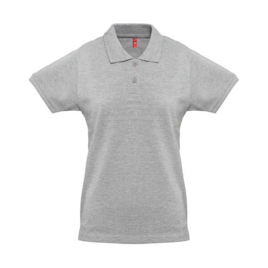Damska koszulka polo ze 100% zgrzebnej bawełny (240 g/m²) z krótkim rękawem. Krój regular z kołnierzem i wstążkami na rękawach oraz wzmocnieniem kołnierza z piki. Wzmocniony kołnierzyk zapinany na 2 guziki w tym samym kolorze (dodatkowy guzik w szwie wewnętrznym). Zszybana po bokach, z małymi bocznymi otworami na dole. Widoczna etykieta jest możliwa do usunięcia. Rozmiary: S, M, L, XL, XXL
