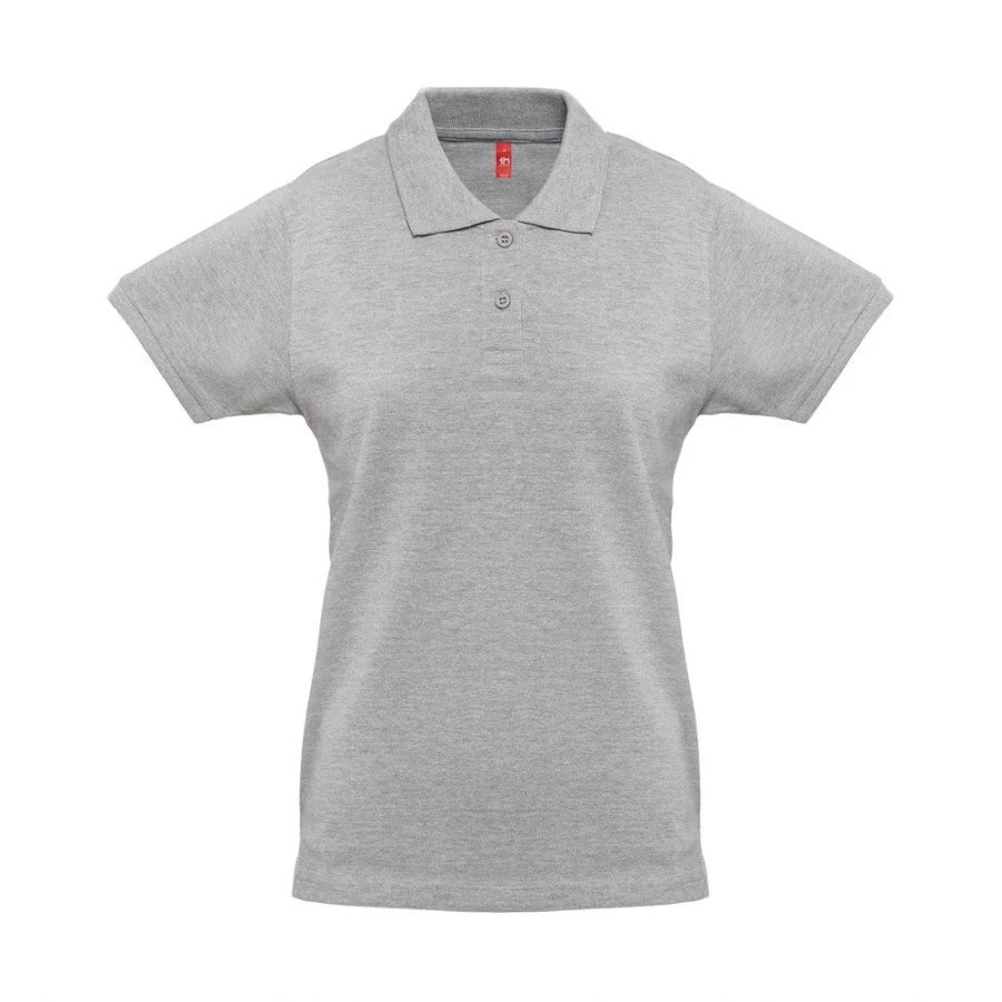 Damska koszulka polo ze 100% zgrzebnej bawełny (240 g/m²) z krótkim rękawem. Krój regular z kołnierzem i wstążkami na rękawach oraz wzmocnieniem kołnierza z piki. Wzmocniony kołnierzyk zapinany na 2 guziki w tym samym kolorze (dodatkowy guzik w szwie wewnętrznym). Zszybana po bokach, z małymi bocznymi otworami na dole. Widoczna etykieta jest możliwa do usunięcia. Rozmiary: S, M, L, XL, XXL