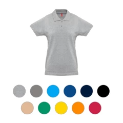 Damska koszulka polo ze 100% zgrzebnej bawełny (240 g/m²) z krótkim rękawem. Krój regular z kołnierzem i wstążkami na rękawach oraz wzmocnieniem kołnierza z piki. Wzmocniony kołnierzyk zapinany na 2 guziki w tym samym kolorze (dodatkowy guzik w szwie wewnętrznym). Zszybana po bokach, z małymi bocznymi otworami na dole. Widoczna etykieta jest możliwa do usunięcia. Rozmiary: S, M, L, XL, XXL