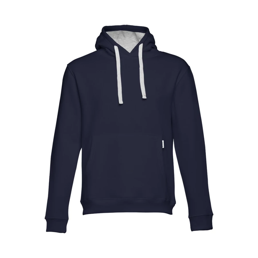 Bluza z kapturem (unisex). 50% bawełna i 50% poliester (320 g/m²), zgrzebna wewnątrz. Ściągacz 1x1 na mankietach i na dole. Kieszeń typu kangurek i kaptur ze sznurkami w kontrastującym kolorze. Rozmiary: S, M, L, XL, XXL